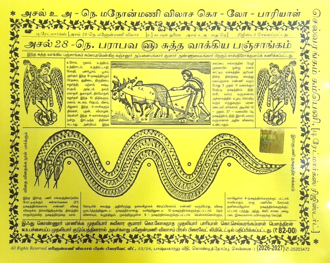 Asal 28-No.Parabava Varusha Suttha Vakkiya Panchangam [அசல் 28-நெ.பராபவ வருஷ சுத்த வாக்கிய பஞ்சாங்கம்] 2026-2027