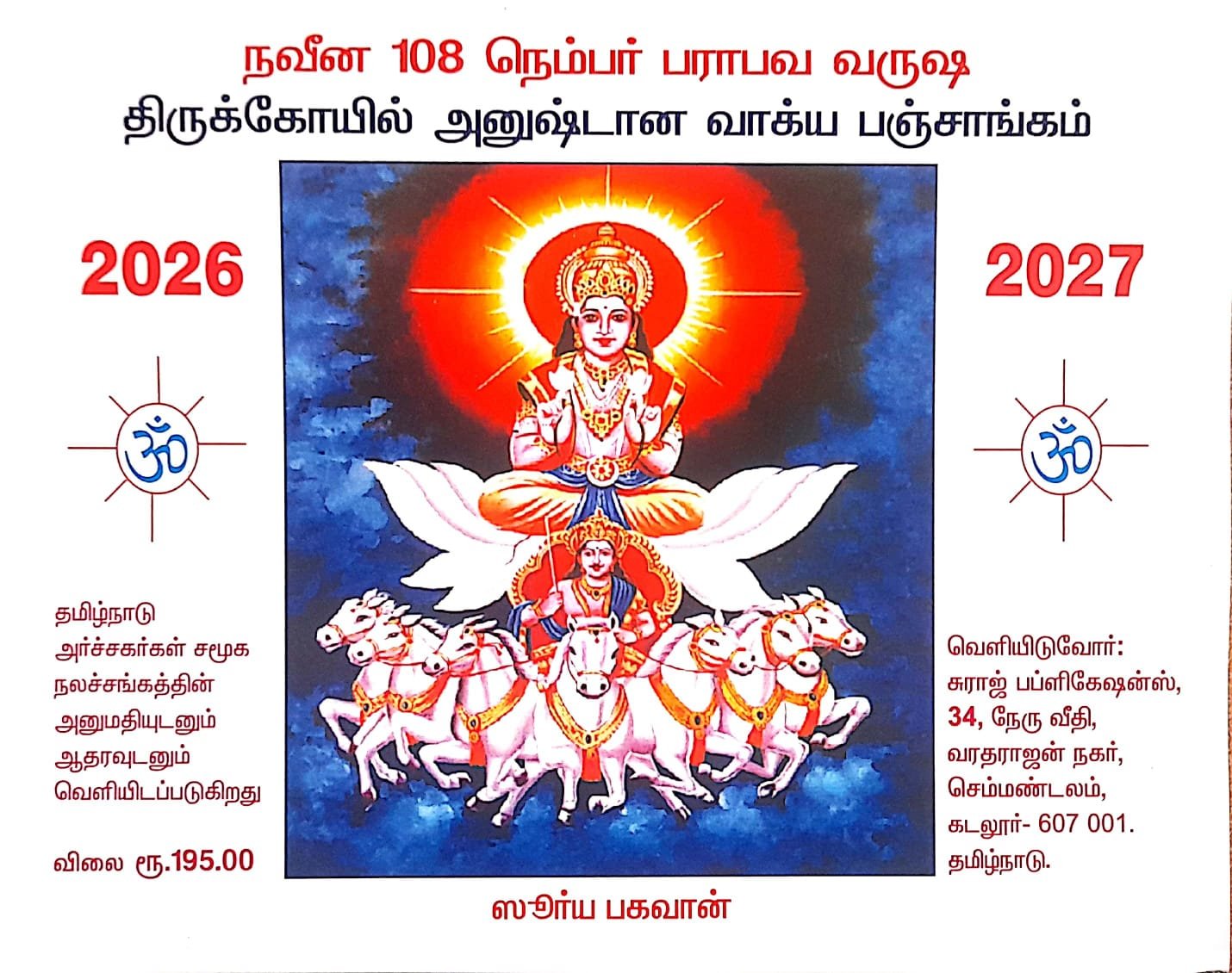 Naveena 108 Parabava Varusha Thirukkoyil anushtana Vakkiya Panchangam [நவீன 108 வருஷ பராபவ திருக்கோயில் அனுஷ்டான வாக்கிய பஞ்சாங்கம்] 2026-2027