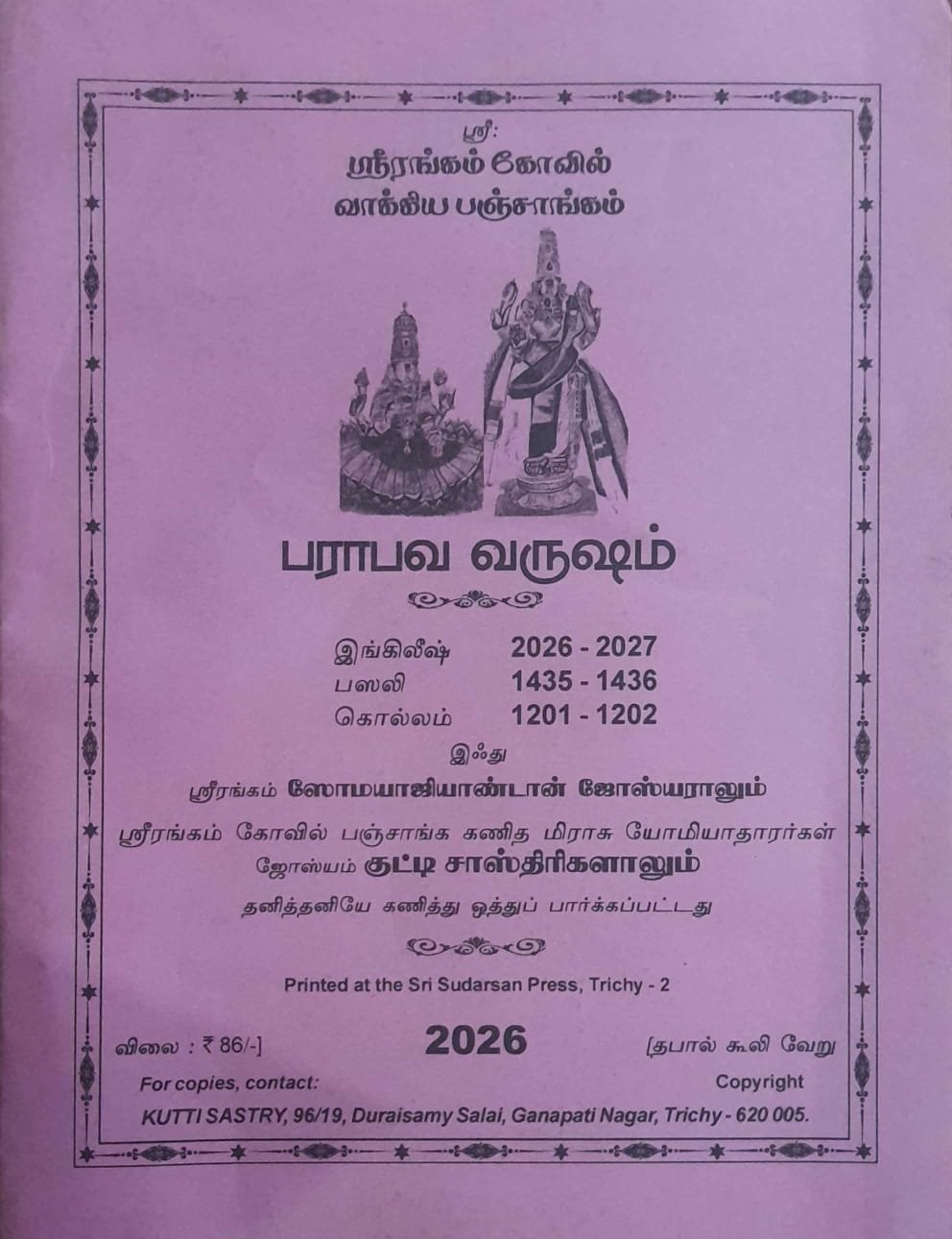 Parabava Varusam Srirangam Kovil Vakkiya Panchangam [பராபவ வருஷம் ஸ்ரீரங்கம் வாக்கிய பஞ்சாங்கம்] 2026-2027