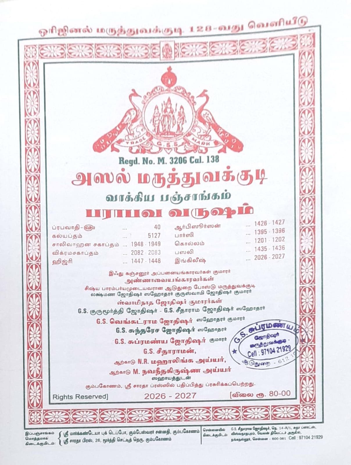 | Publisher | G.S.Subramanya Jothidar [G.S.சுப்ரமணிய ஜோதிஷர்] |