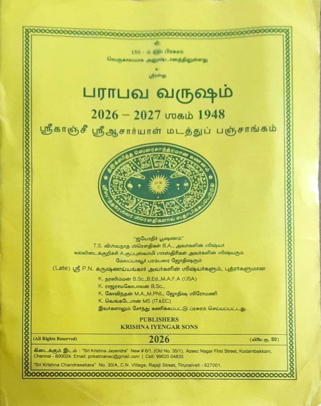 Parabava Varusham Sri Kanchi Sri Acharyal Madathu Panchangam (2026-2027) [பராபவ வருஷம் ஸ்ரீ காஞ்சி ஸ்ரீ ஆசார்யாள் மடத்து பஞ்சாங்கம்]