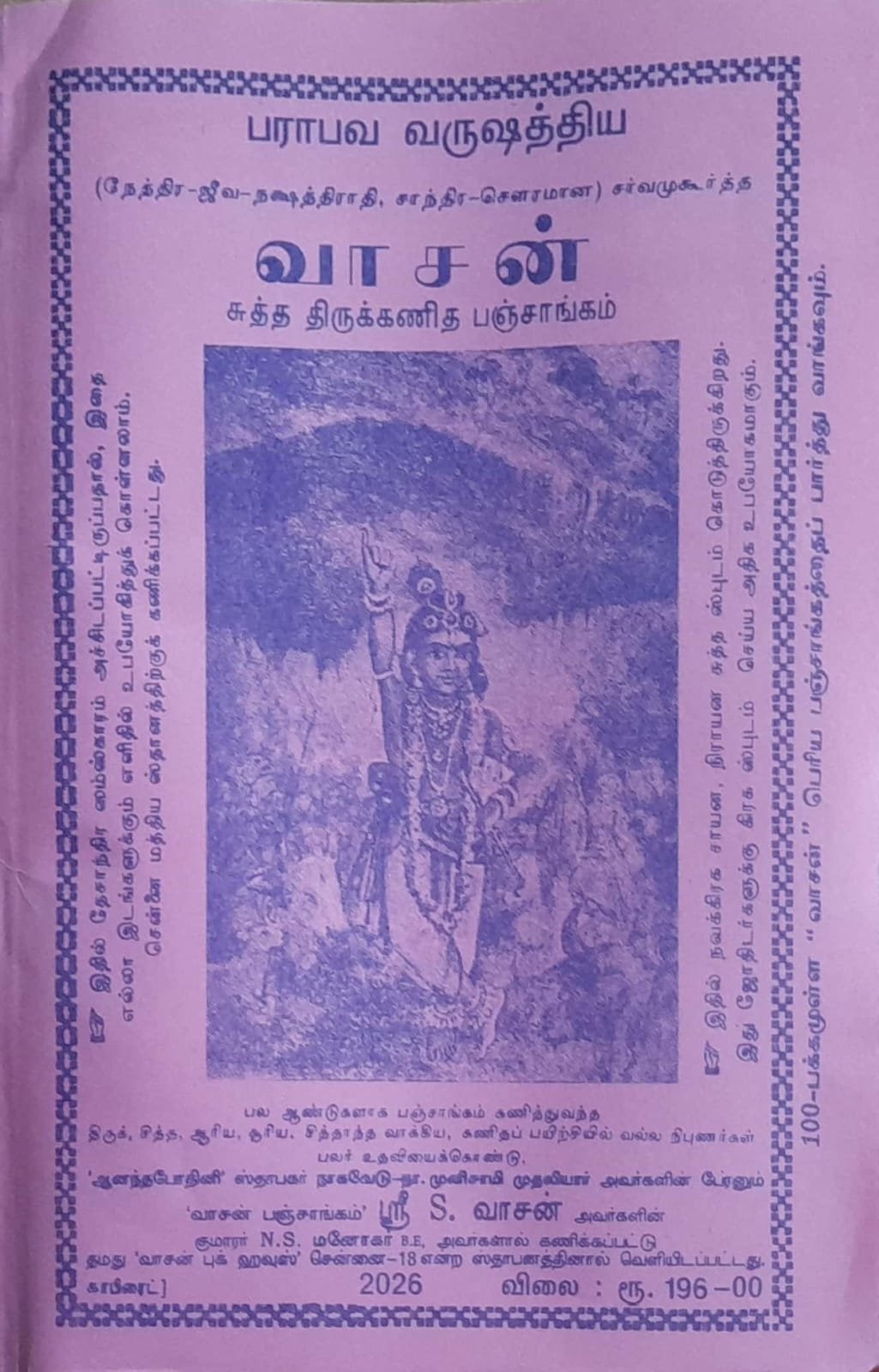 Parabava Varushathiya Vasan Sutha Thirukkanidha Panchangam [பராபவ வருஷத்திய வாசன் சுத்த திருக்கணித பஞ்சாங்கம்]2026-2027