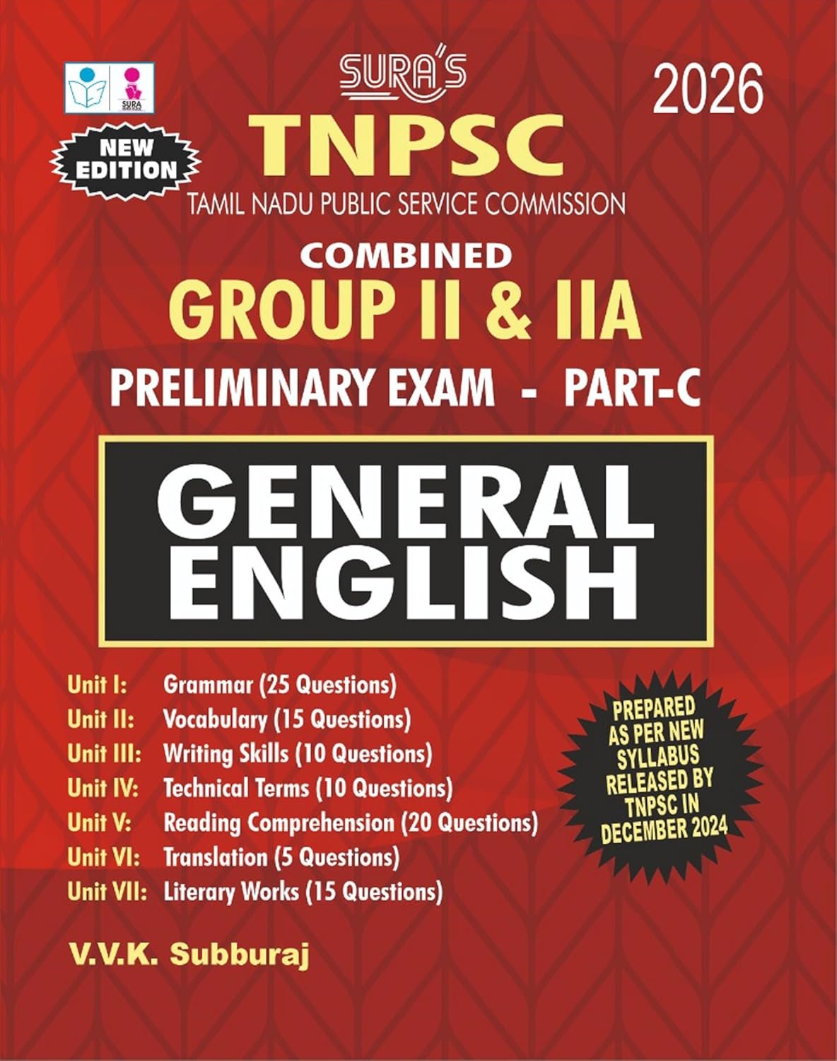 Sura TNPSC Combined Group II & IIA General English [Preliminary Exam Part C Exam Book Guide] 2025