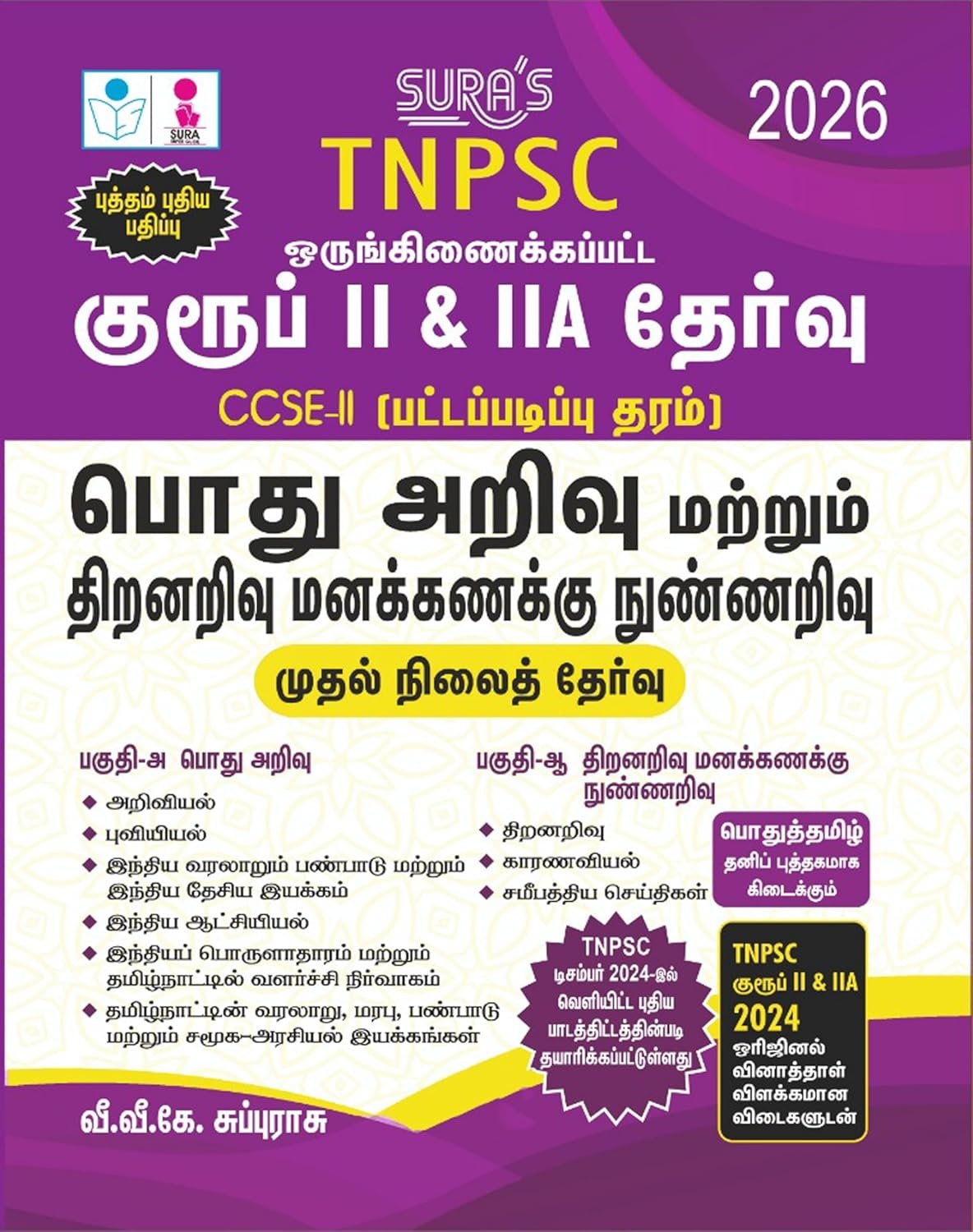 SURA`S TNPSC Group II and IIA Preliminary Exam CCSE-II (Graduate Level) General Studies [Aptitude and Mental Ability Book]2026[பொதுஅறிவு மற்றும் திறனறிவு மனக்கணக்கு நுண்ணறிவு ]